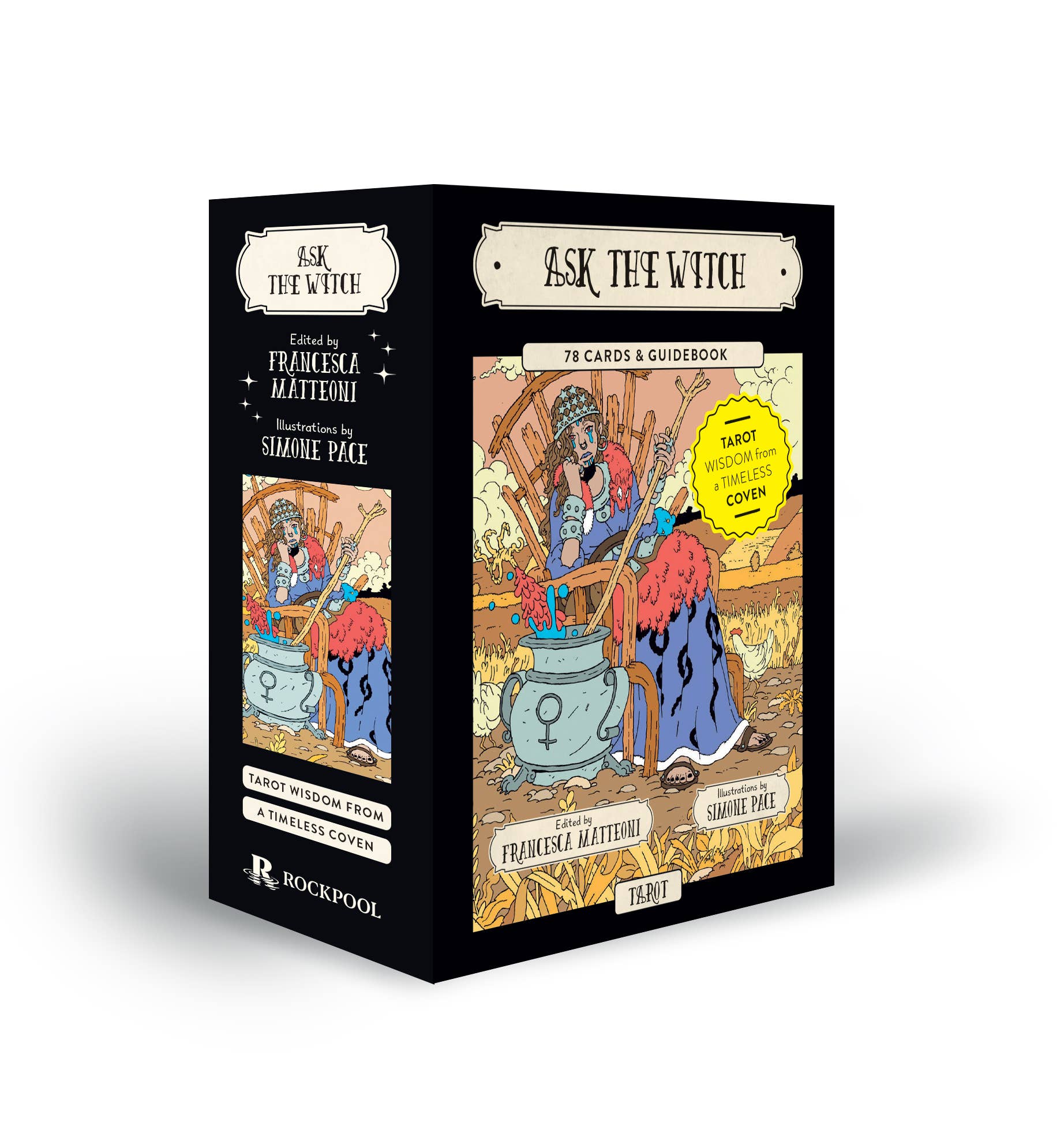 In the fascinating world of Tarot cards, this deck has something more to offer, both to complete beginners and to expert readers. Every Major Arcana introduces the readers to a famous witch and in the Minor Arcana, witches as well as their tools and animals are divided into categories that correspond to the four elements of fire, water, air and earth. The witches found in the deck are aged savages, ancient fairies, fallen goddesses, nocturnal creatures, lords of chaos and explorers of cusps. They come from the various traditions the world over, to gather beyond the mist and under the moon.