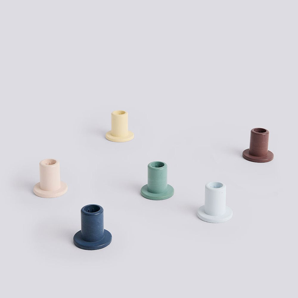 Crafted in concrete with a smooth matte finish, the Tube Candleholder fuses a minimalistic tubular design with a muted palette. Designed to be used with HAY candles, the functional candleholder features internal ridges that hold the candle securely and a circular base to balance the design and catch any dripping wax. Available in a wide assortment of colours, the candleholders can be used individually or grouped together in contrasting designs.
